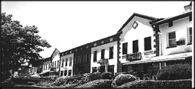 The cornices of tiles or brick are a pleasing contrast. Deep front yards with a variety of evergreens and flourishing shrubs make